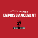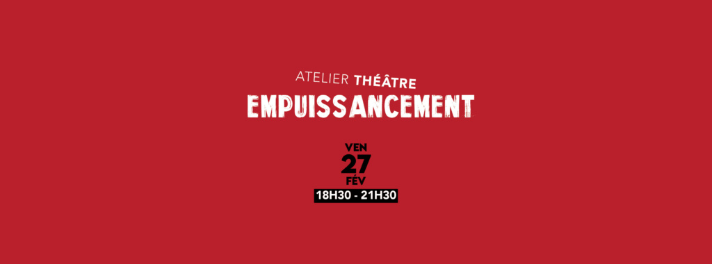 Atelier théâtre EMPUISSANCEMENT 28 août 202528 août 2025 leverso Image publiée dans : Atelier théâtre CRIEE PUBLIQUE Atelier théâtre EMPUISSANCEMENT Image disponible dans : 2560x949 / 150x150 / 300x111 / 768x285 / 1024x380 / 1536x569 / 2048x759 / 450x250 / 600x400 / 820x304 / 272x182 ← Précédent Suivant →